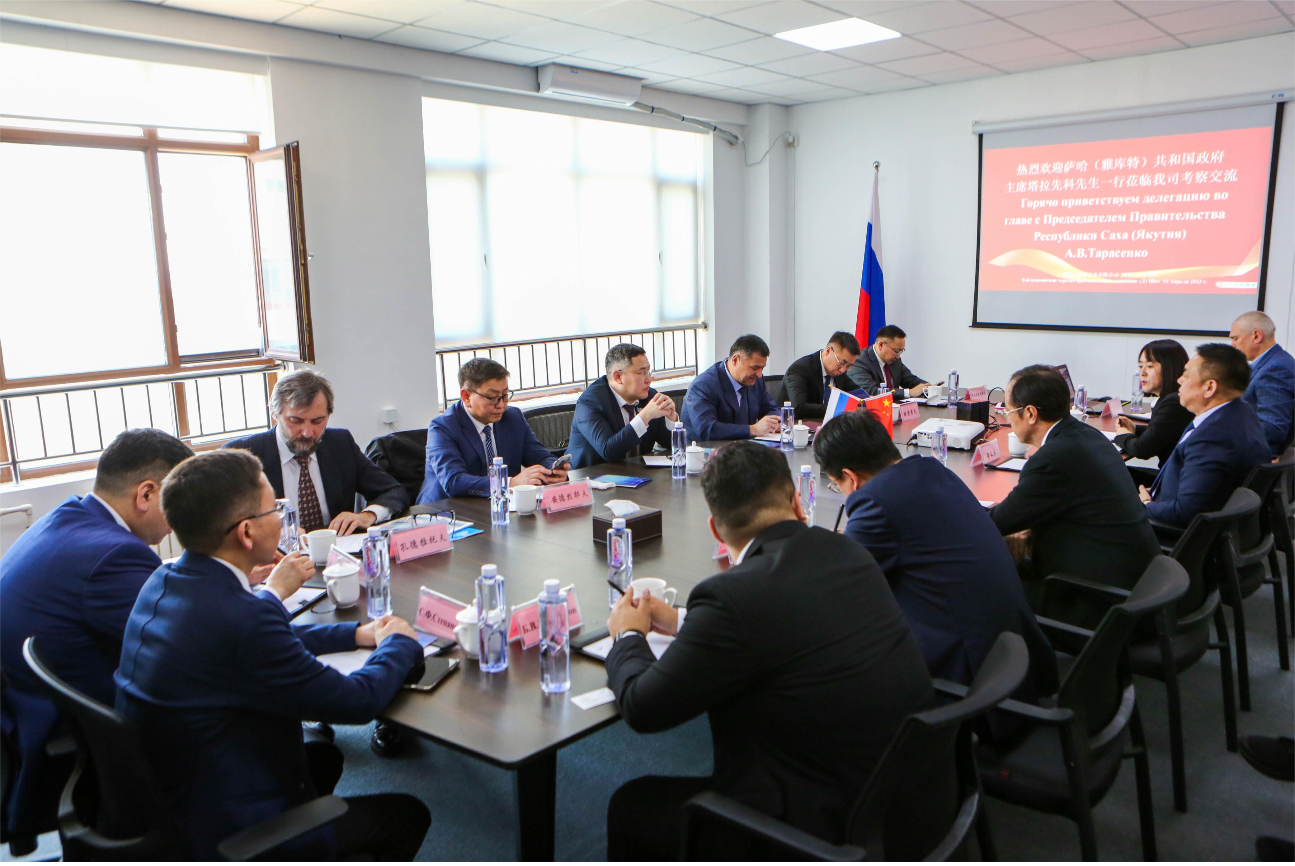 4月13日下午,俄羅斯薩哈(雅庫特)共和國政府主席塔拉先科率領政企代表團蒞臨我司考察交流,雙方就積極開展合作進行了深入探討。